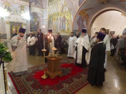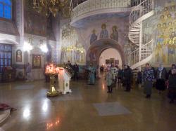 19 января ПОНЕДЕЛЬНИК Святое Богоявление. Крещение Господа Бога и Спаса нашего Иисуса Христа 7.40. Часы. Литургия св. Василия Великого. Великое освящение воды 17.00. Вечернее богослужение 20 января ВТОРНИК Попразднство Богоявления. Собор Предтечи и Крестителя Господня Иоанна. 8.40. Часы. Божественная литургия 17.00. Вечернее богослужение 21 января СРЕДА Прп. Домники (ок. 474). Прпп. Георгия Хозевита (VII) и Емилиана исп. (IX). 8.40. Часы. Божественная литургия 17.00. Полиелейная служба 22 января ЧЕТВЕРГ Мч. Полиевкта (259). Свт. Филиппа, митр. Московского и всея Руси, чудотворца (1569). 8.40. Часы. Божественная литургия 17.00. Полиелейная служба 23 января ПЯТНИЦА Свт. Григория, еп. Нисского (после 394). Свт. Феофана, Затворника Вышенского (1894). 8.40. Часы. Божественная литургия 17.00. Полиелейная служба 24 января СУББОТА Суббота по Богоявлении. Прп. Феодосия Великого, общих житий начальника (529). Прп. Михаила Клопского, Новгородского (ок. 1453-1456). 8.40. Часы. Божественная литургия. 17.00. Всенощное бдение 25 января ВОСКРЕСЕНЬЕ. Неделя 33-я по Пятидесятнице, по Богоявлении. Глас 8-й Свт. Саввы, архиеп. Сербского (1237). Мц. Татианы и с нею в Риме пострадавших (226-235). 7.00. Часы. Ранняя Божественная литургия 8.40. Часы. Божественная литургия 17.00. Вечернее богослужение. Акафист Крещению Господню