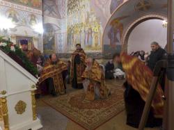 РАСПИСАНИЕ БОГОСЛУЖЕНИЙ. Седмица 24-я по Пятидесятнице 17 ноября ПОНЕДЕЛЬНИК Прп. Иоанникия Великого (846). Прп. Меркурия Печерского, в Дальних пещерах (XIV). 8.40. Часы. Божественная литургия 17.00. Полиелейная служба 18 ноября ВТОРНИК Мчч. Галактиона и Епистимии (III). Свт. Ионы, архиеп. Новгородского (1470). Свт. Тихона, патриарха Московского и всея Руси (избрание на Патриарший престол 1917). Отцов Поместного Собора Церкви Русской 1917-1918 годов. 8.40. Часы. Божественная литургия 17.00. Вечернее богослужение 19 ноября СРЕДА Свт. Павла, патриарха Константинопольского, исп. (после 350). Прп. Варлаама Хутынского (1192). 8.40. Часы. Божественная литургия 17.00. Вечернее богослужение 20 ноября ЧЕТВЕРГ Мучеников в Мелитине (III). 8.40. Часы. Божественная литургия 17.00. Полиелейная служба 21 ноября ПЯТНИЦА Собор Архистратига Михаила и прочих Небесных Сил бесплотных. Архангелов Гавриила, Рафаила, Уриила, Селафиила, Иегудиила, Варахиила и Иеремиила. 8.40. Часы. Божественная литургия 17.00. Полиелейная служба 22 ноября СУББОТА Мчч. Онисифора и Порфирия (ок. 284-305). Свт. Нектария Эгинского, митр. Пентапольского, чудотворца (1920). Иконы Божией Матери, именуемой «Скоропослушница» (X). 8.40. Часы. Божественная литургия. 17.00. Всенощное бдение 23 ноября ВОСКРЕСЕНЬЕ. Неделя 24-я по Пятидесятнице. Глас 7-й Апп. от 70-ти Ераста, Олимпа, Родиона, Сосипатра, Куарта (Кварта) и Тертия (I). 7.00. Часы. Ранняя Божественная литургия 8.40. Часы. Божественная литургия 17.00. Вечернее богослужение. Акафист Божией Матери «Скоропослушница»