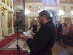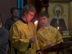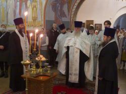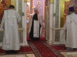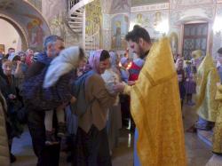 РАСПИСАНИЕ БОГОСЛУЖЕНИЙ. Седмица сырная (масленица) — сплошная 16 февраля ПОНЕДЕЛЬНИК Попразднство Сретения Господня. Правв. Симеона Богоприимца и Анны пророчицы. Равноап. Николая, архиеп. Японского (1912). 8.40. Часы. Божественная литургия 17.00. Вечернее богослужение 17 февраля ВТОРНИК Прп. Исидора Пелусиотского (ок. 436-440). Блгв. вел. кн. Георгия (Юрия) Всеволодовича Владимирского (1238). 8.40. Часы. Божественная литургия 17.00. Вечернее богослужение 18 февраля СРЕДА Свт. Феодосия, архиеп. Черниговского (1696). 9.00. Утреннее богослужение. Литургии не положено 17.00. Вечернее богослужение 19 февраля ЧЕТВЕРГ Отдание праздника Сретения Господня. Прп. Вукола, еп. Смирнского (ок. 100). 8.40. Часы. Божественная литургия 17.00. Вечернее богослужение 20 февраля ПЯТНИЦА Прп. Парфения, еп. Лампсакийского (IV). 9.00. Утреннее богослужение. Литургии не положено 17.00. Вечернее богослужение 21 февраля СУББОТА Всех преподобных отцов, в подвиге просиявших. Вмч. Феодора Стратилата (319). 8.40. Часы. Божественная литургия 17.00. Всенощное бдение 22 февраля ВОСКРЕСЕНЬЕ. Неделя сыропустная. Воспоминание Адамова изгнания. Прощеное воскресенье. Глас 4-й Обретение мощей свт. Тихона, патриарха Московского и всея Руси (1992). Обретение мощей свт. Иннокентия, еп. Иркутского (1805). Заговенье на Великий пост. 7.00. Часы. Ранняя Божественная литургия 8.40. Часы. Божественная литургия. Чин прощения после Божественной Литургии
