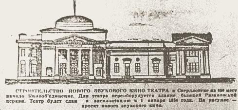 Проект реконструкции Свято-Троицкого храма в кинотеатр, 1930-е годы. Архив СОКМ