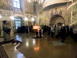 РАСПИСАНИЕ БОГОСЛУЖЕНИЙ. Седмица 34-я по Пятидесятнице 26 января ПОНЕДЕЛЬНИК Мчч. Ермила и Стратоника (ок. 315). 8.40. Часы. Божественная литургия 17.00. Полиелейная служба 27 января ВТОРНИК Отдание праздника Богоявления. Равноап. Нины, просветительницы Грузии (335). 8.40. Часы. Божественная литургия 17.00. Вечернее богослужение 28 января СРЕДА Прпп. Павла Фивейского (341) и Иоанна Кущника (V). 8.40. Часы. Божественная литургия 17.00. Вечернее богослужение 29 января ЧЕТВЕРГ Поклонение честным веригам ап. Петра. Прав. Максима, иерея Тотемского (1650). 8.40. Часы. Божественная литургия 17.00. Полиелейная служба 30 января ПЯТНИЦА Прп. Антония Великого (356). Прп. Антония Дымского (1224). 8.40. Часы. Божественная литургия 17.00. Вечернее богослужение 31 января СУББОТА Свтт. Афанасия (373) и Кирилла (444), архиепископов Александрийских. Прпп. схимонаха Кирилла и схимонахини Марии (ок. 1337), родителей прп. Сергия Радонежского. 8.40. Часы. Божественная литургия. 17.00. Всенощное бдение 1 февраля ВОСКРЕСЕНЬЕ. Неделя о мытаре и фарисее. Глас 1-й Прп. Макария Великого, Египетского (390-391). Свт. Марка, архиеп. Ефесского (1444). 7.00. Часы. Ранняя Божественная литургия 8.40. Часы. Божественная литургия 17.00. Полиелейная служба