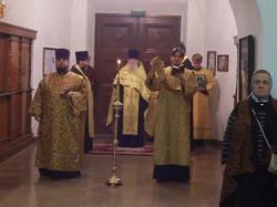 19 января ПОНЕДЕЛЬНИК Святое Богоявление. Крещение Господа Бога и Спаса нашего Иисуса Христа 7.40. Часы. Литургия св. Василия Великого. Великое освящение воды 17.00. Вечернее богослужение 20 января ВТОРНИК Попразднство Богоявления. Собор Предтечи и Крестителя Господня Иоанна. 8.40. Часы. Божественная литургия 17.00. Вечернее богослужение 21 января СРЕДА Прп. Домники (ок. 474). Прпп. Георгия Хозевита (VII) и Емилиана исп. (IX). 8.40. Часы. Божественная литургия 17.00. Полиелейная служба 22 января ЧЕТВЕРГ Мч. Полиевкта (259). Свт. Филиппа, митр. Московского и всея Руси, чудотворца (1569). 8.40. Часы. Божественная литургия 17.00. Полиелейная служба 23 января ПЯТНИЦА Свт. Григория, еп. Нисского (после 394). Свт. Феофана, Затворника Вышенского (1894). 8.40. Часы. Божественная литургия 17.00. Полиелейная служба 24 января СУББОТА Суббота по Богоявлении. Прп. Феодосия Великого, общих житий начальника (529). Прп. Михаила Клопского, Новгородского (ок. 1453-1456). 8.40. Часы. Божественная литургия. 17.00. Всенощное бдение 25 января ВОСКРЕСЕНЬЕ. Неделя 33-я по Пятидесятнице, по Богоявлении. Глас 8-й Свт. Саввы, архиеп. Сербского (1237). Мц. Татианы и с нею в Риме пострадавших (226-235). 7.00. Часы. Ранняя Божественная литургия 8.40. Часы. Божественная литургия 17.00. Вечернее богослужение. Акафист Крещению Господню
